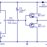 IC. The circuit uses two NE555 timers ICs and each of them are wired as